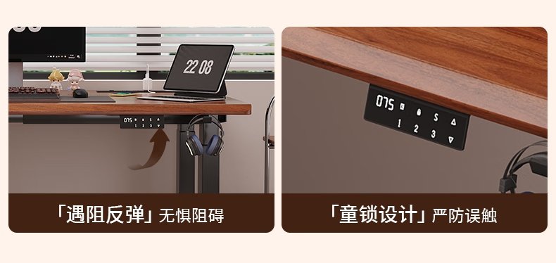 ✅Anti-collision system: When the desktop comes into contact with other objects during height adjustment, the system reverses to avoid damage.