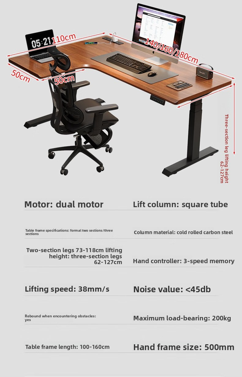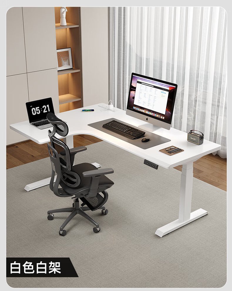 ZHEHAN L-shaped standing desk electric height-adjustable standing desk, ergonomic large computer desk, left and right interchangeable installation